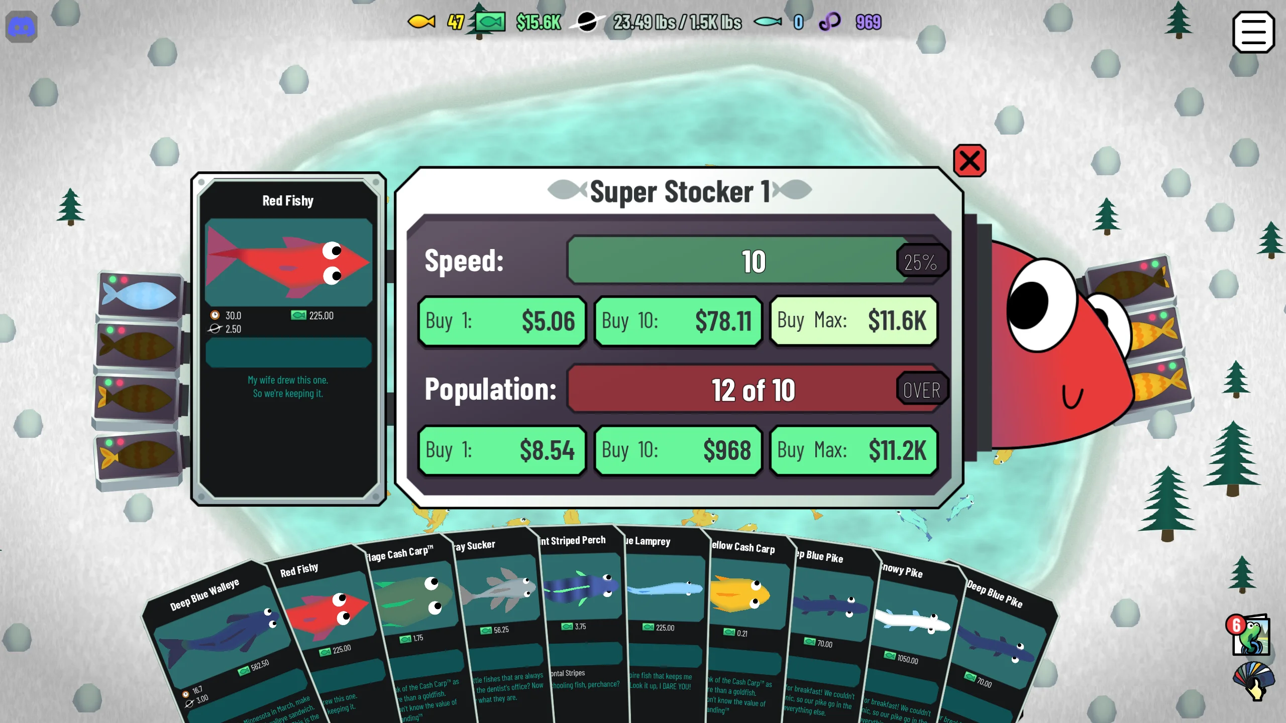 - Stock the pond with fish and upgrade your stockers