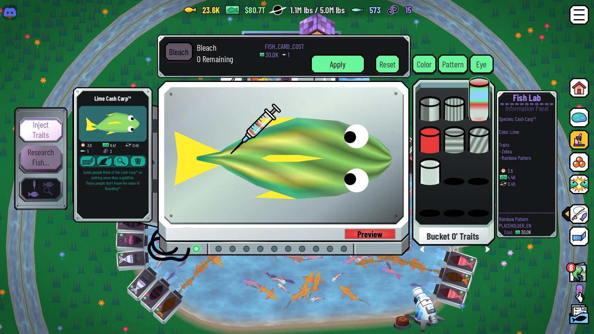 - Paint and inject your fish to maximize their profitability