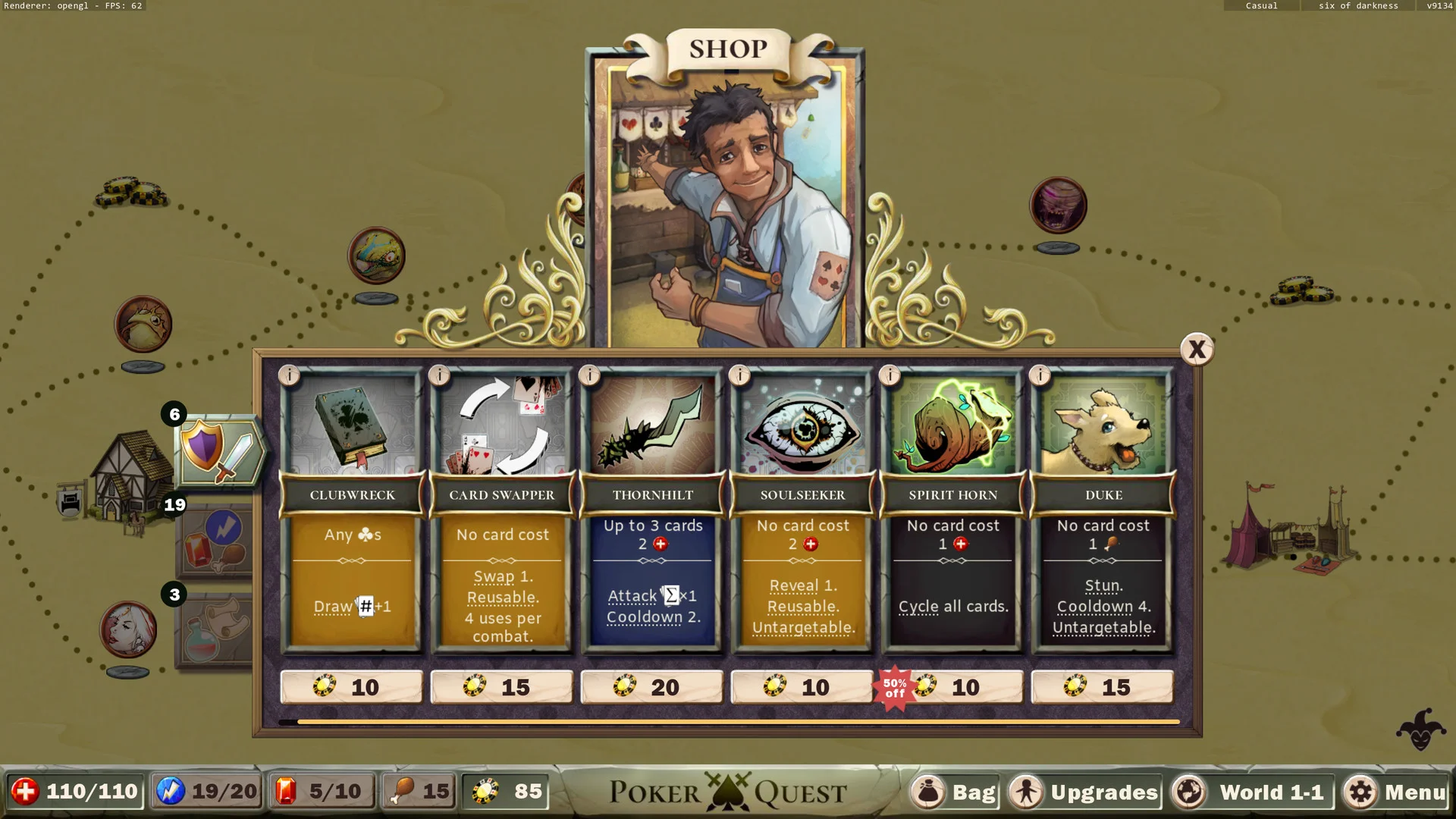 Poker Quest is a new roguelike card battler where you progress through a world full of monsters, using a standard deck of playing cards (like the "Queen of Spades") with magical properties to activate your gear in combat. The game offers a wide variety of playable heroes, each specializing in different strategies that change the way you play